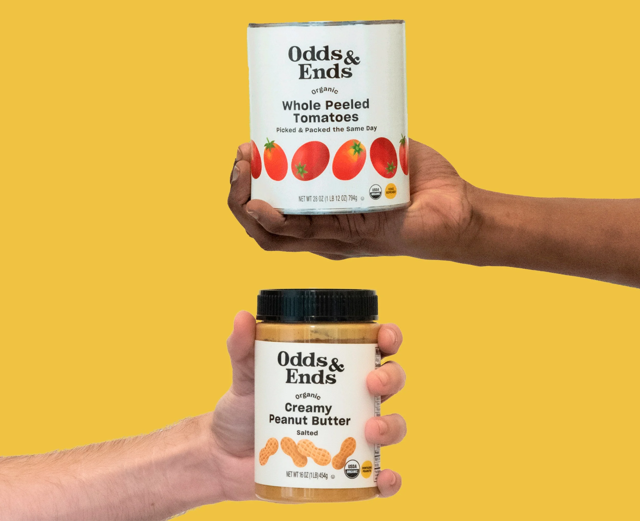 We selected the name Odds and Ends and the slogan, “Better Together,” to encapsulate the humanity behind Misfits Market and their philosophy on food. We focused on unconventionality to highlight the random assortment of items we keep in our pantry while also paying tribute to the path they are forging by advocating that quality food be accessible to everyone. We utilized earth tones, vibrant illustrations and playful letter forms to reinforce this connectivity and spirit of sharing that Misfits Market and Odds & Ends stand for.